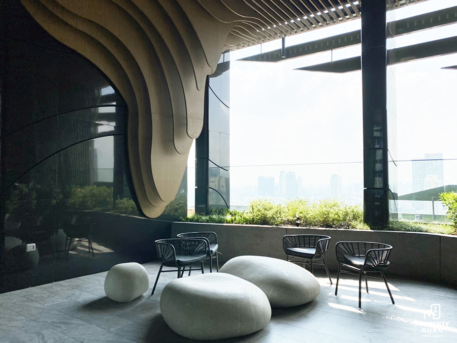 ขึ้นมาที่ชั้น 22 จะมีที่นั่งโซน Outdoor ในบรรยากาศสวน