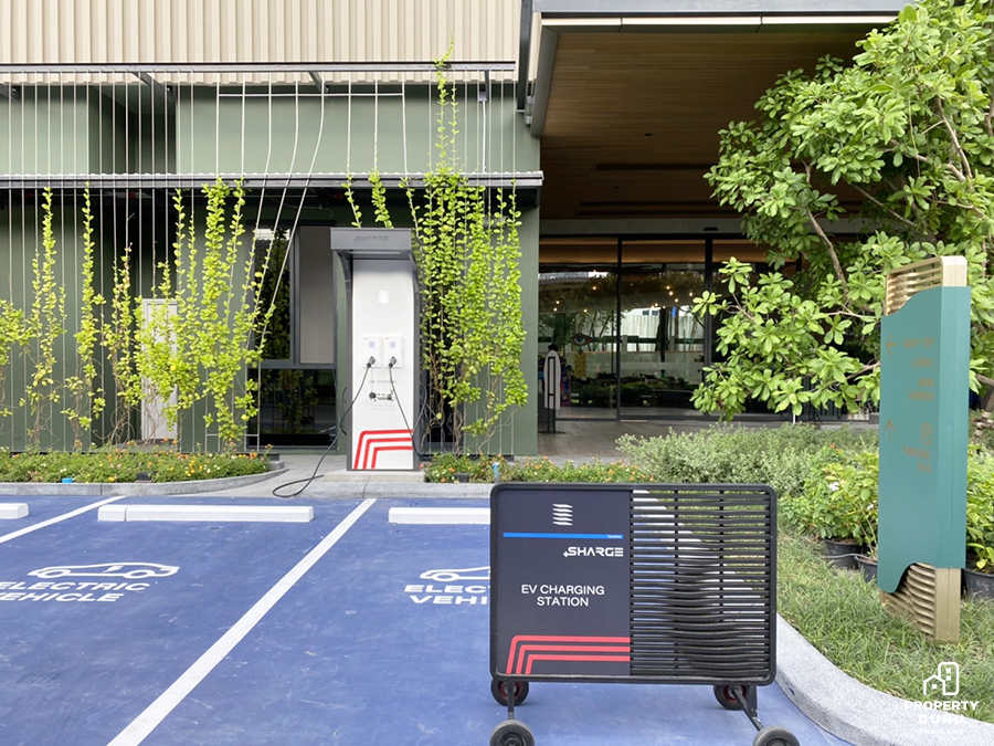 ด้านนอกมีที่จอดรถแขกและที่จอด EV CHARGING