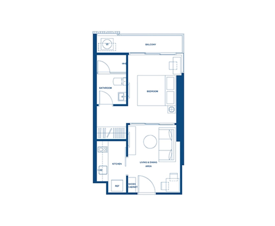 - 1 ห้องนอน 1 ห้องน้ำ ขนาด 31.75-41.25 ตร.ม.