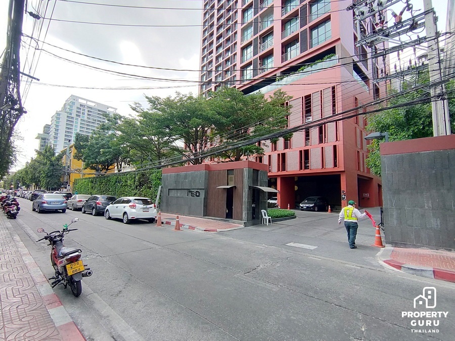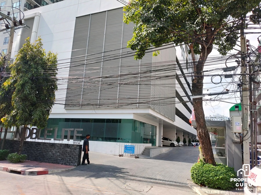 ถัดมาจะเห็นคอนโดสีแดงโดดเด่นสะดุดตา แน่นอนว่านี่คือคอนโด โนเบิล รีดี