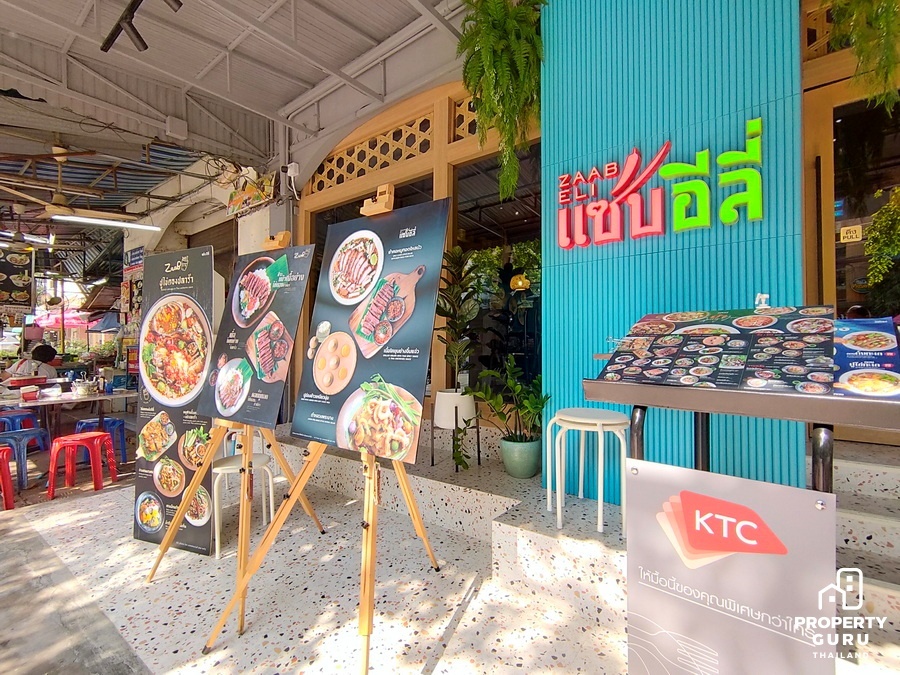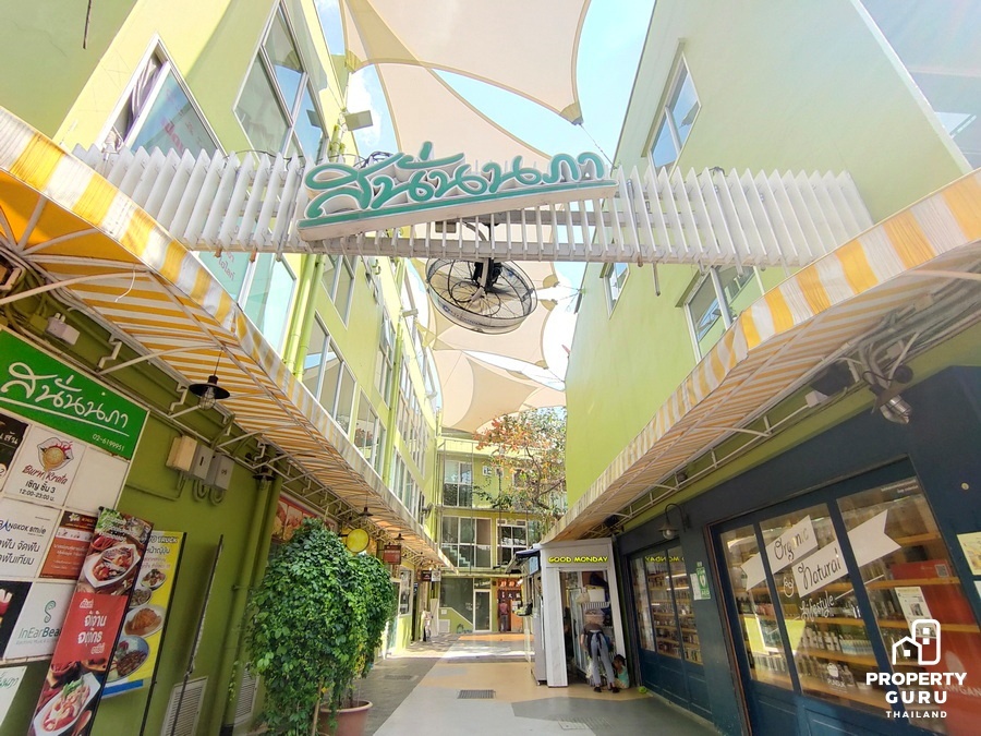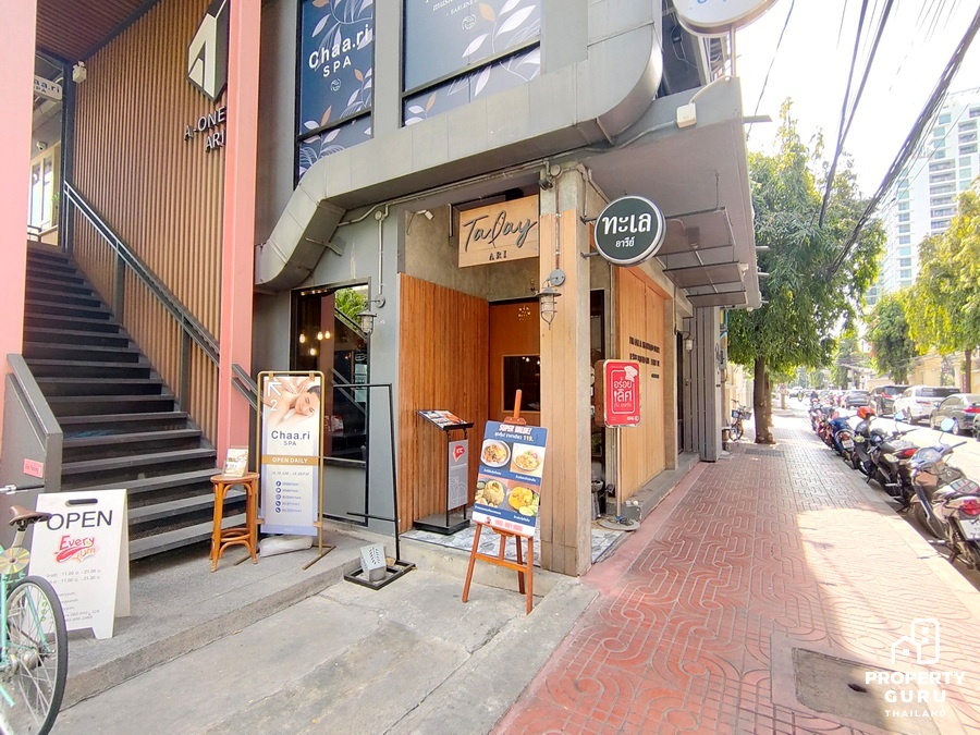บริเวณต้นซอยอารีย์ 1 ค่อนข้างคึกคักเต็มไปด้วยร้านค้าและร้านอาหาร