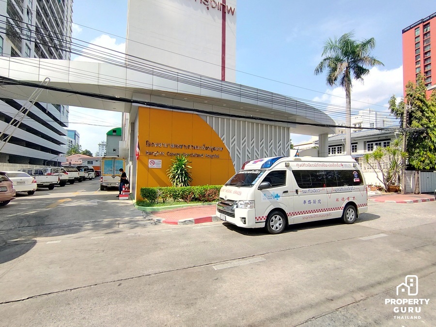 ฝั่งตรงข้ามเป็นโรงพยาบาลเฉพาะทางมะเร็งกรุงเทพ
