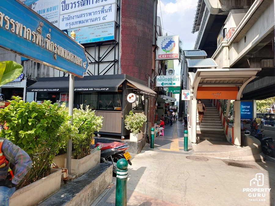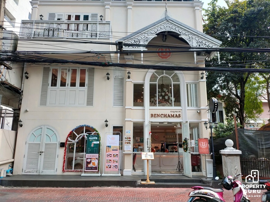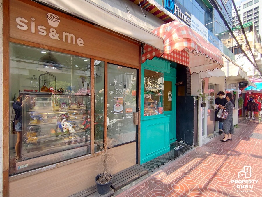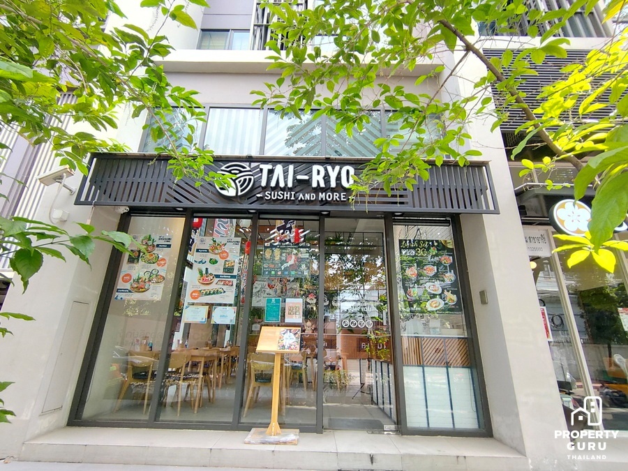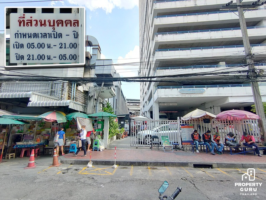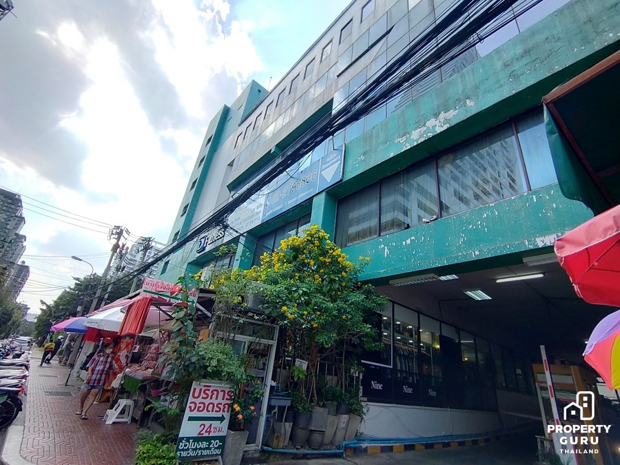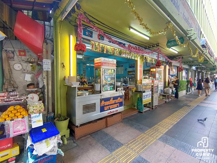 และอาคารพาณิชย์อาคารพาณิชย์ความสูงประมาณ 6 ชั้น ด้านล่างเปิดเป็นร้านขายอาหาร
