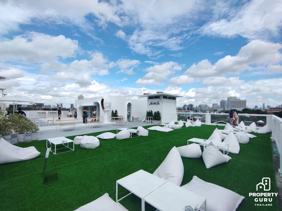 บริเวณโซน Rooftop มีที่ให้เลือกนั่งหลายมุม ไม่ว่าจะเป็น โซนโต๊ะบาร์ทรงสูง