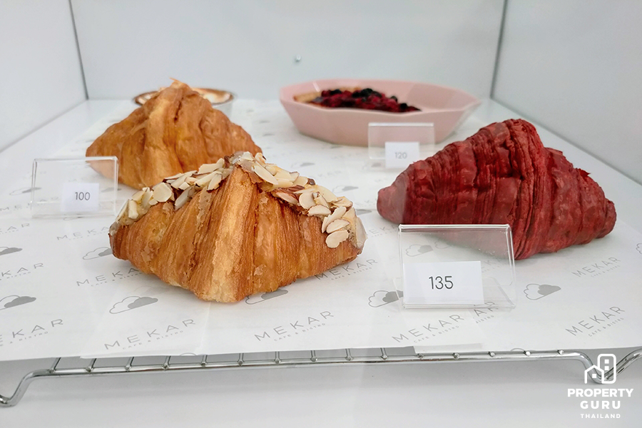เมนูเบเกอรี่มีให้เลือกทาน เช่น ครัวซองต์คลาสสิค, ครัวซองต์สตรอว์เบอร์รี, เลม่อนเมอแรงก์, ทาร์ต เบอรี่