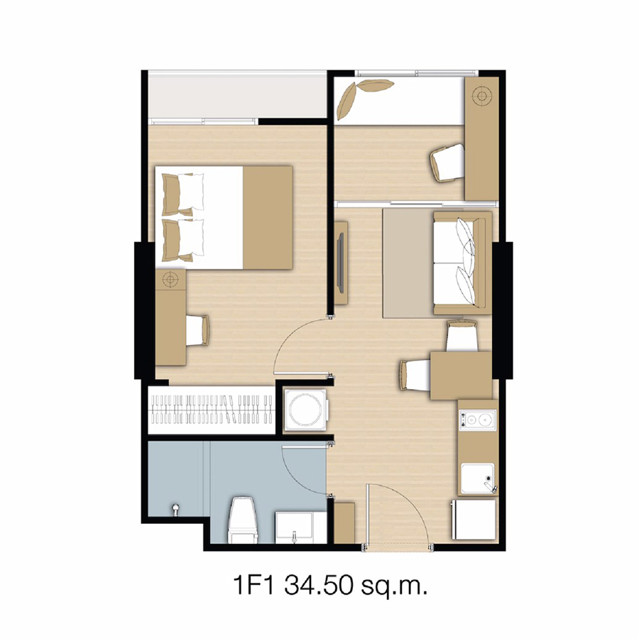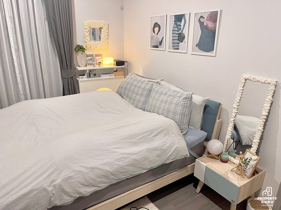เลือกเป็นห้อง Type 1 Bedroom Plus ประมาณ 35 ตร.ม.ค่ะ อยู่ที่นี่มาประมาณ 2 ปีแล้ว ที่เลือก Type นี้เพราะช่วงแรกมีน้องสาวมาอยู่ด้วย เลยเลือกจัดห้อง Plus เป็นห้องนอนอีก 1 ห้องนอน จะได้มีความเป็นส่วนตัว โมว่าห้องนี้อยู่ 2 คนได้สบายเลยค่ะ ไม่อึดอัด หรือถ้ามีเพื่อนๆ ครอบครัวมา ก็มีพื้นที่ตรงนี้ให้นอนหรือพักผ่อนได้เลย โดยรวมถือว่ากำลังพอดีแล้ว แฮปปี้มาก