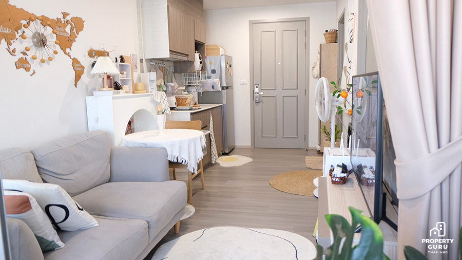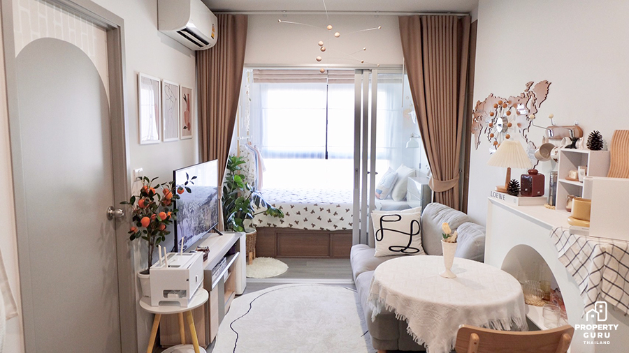 คงจะมีสาวขี้เบื่ออีกไม่น้อยที่ขยันแต่งห้อง เปลี่ยนมุมบ่อย เปลี่ยนเฟอร์นิเจอร์เข้าๆ ออกๆ การใช้เฟอร์นิเจอร์ลอยตัวก็เป็นทางเลือกที่ดีนะคะ เหมือนคุณโมจิที่แต่งห้องตามเทรนด์ มุมทำคอนเทนต์ไม่ซ้ำ เห็นห้องตัวเองทีไรก็ตกหลุมรักรอบที่ล้าน และจากที่สัมภาษณ์มาจะเห็นได้ว่าเหตุผลหนึ่งที่คนจะเลือกอยู่คอนโดคือเรื่องของการเดินทาง ที่ไม่ต้องใช้รถยนต์ สามารถเดินทางสะดวกด้วยขนส่งสาธารณะ อีกทั้งคอนโดก็ยังมีความปลอดภัย มีส่วนกลางที่สามารถใช้ประโยชน์ได้ตลอดเวลา รวมถึงการดูแลรักษายังไม่ต้องดูแลมากเท่ากับบ้านอีกด้วย ใครที่สนใจจะซื้อคอนโดช่วงนี้ราคาลงอยู่ด้วย เลือกทำเลและห้องที่ชอบแล้วจัดเลยค่ะ