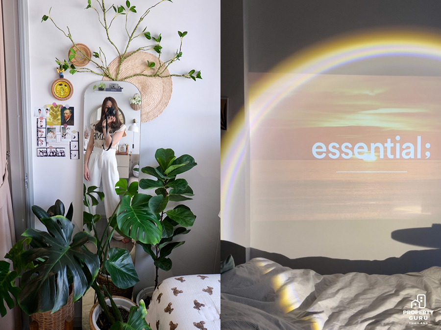 แรงบันดาลใจมาจากการเสพช่อง Youtube, Instagram และ Pinterast เลยค่ะ คือโมดูเยอะมากกก คอนเทนต์พวกแต่งห้องมินิมอล แต่งห้องสไตล์เกาหลี แต่งห้องงบประหยัด ดูทั้งไทยและต่างประเทศเลยค่ะ คือดูเพลินมาก มีแต่ห้องสวยๆ เราก็อยากจะมีห้องแบบนั้น แต่ละคนมีไอเดียเยอะมาก โมก็เอามาปรับเปนแนวเราตามของที่เราหาได้ ถ้าจะให้นิยามว่าห้องโมสไตล์แบบไหนก็พูดยากเหมือนกันค่ะ เพราะโมรู้สึกว่าห้องเรามันมีความ Homey Cozy แล้วก็ Minimal ด้วย เอาเป็นว่าเป็นห้องแบบ “โมจิสไตล์” แล้วกันค่ะ
