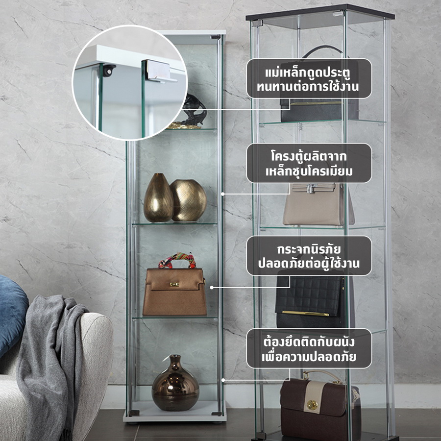 ตู้โชว์กระจก รุ่นกราเทีย กระจกนิรภัยเพื่อความปลอดภัยของผู้ใช้งาน ตู้กระจกสำหรับตั้งโชว์เครื่องแก้วและของสะสมชิ้นโปรด ให้สะอาดปราศจากฝุ่น
