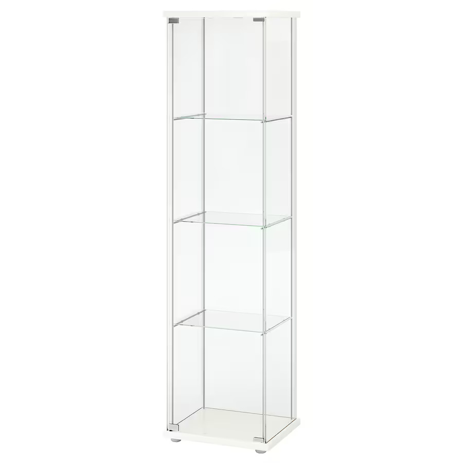 ตู้กระจกสำหรับตั้งโชว์เครื่องแก้วและของสะสมชิ้นโปรด ให้สะอาดปราศจากฝุ่น ชั้นกระจกแบบปรับได้ ช่วยให้ปรับพื้นที่จัดเก็บได้ตามต้องการ ขายพร้อมกุญแจและลูกกุญแจ 2 ดอก พร้อมชั้นปรับระดับได้ 3 ชั้น ออกแบบให้สามารถติดตั้งไฟแสงสว่างภายในได้ (หลอดไฟแยกจำหน่าย) ใช้อุปกรณ์ยึดที่ให้มา ยึดเฟอร์นิเจอร์ติดผนังให้แน่น เพื่อป้องกันเฟอร์นิเจอร์ล้มหรือคว่ำลงหากเด็กปีนป่ายหรือห้อยโหน ใช้กระจกนิรภัยอย่างระมัดระวัง หากขอบกระจกบิ่นหรือเกิดรอยขีดข่วนบนผิว อาจทำให้กระจกแตกหักได้ทันที ระวังการกระแทกด้านข้างของกระจก เพราะเป็นส่วนที่แตกง่ายที่สุด วัสดุผนังแต่ละแบบ ต้องใช้สกรูยึดต่างชนิดกัน ควรเลือกใช้สกรูที่เหมาะกับผนังนั้น (สกรูแยกจำหน่าย) ต้องใช้คน 2 คนในการประกอบเฟอร์นิเจอร์