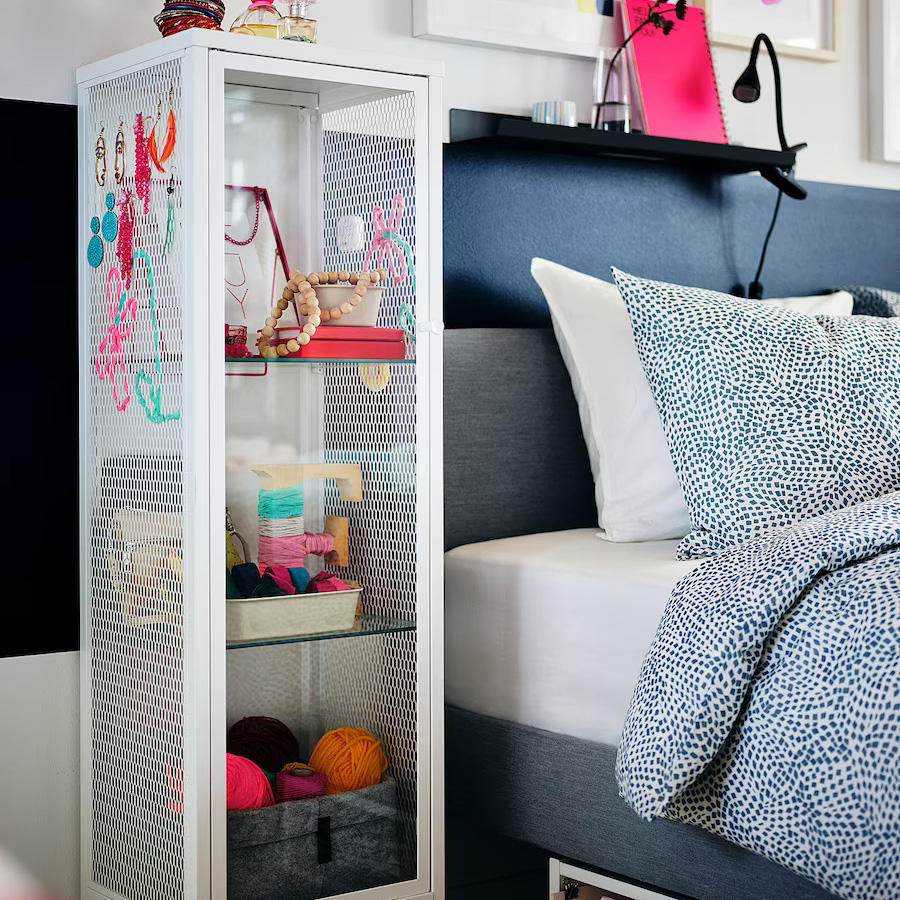 3. BAGGEBO บักเกบู ตู้บานกระจก โลหะ/ขาว ขนาด 34x30x116 ซม.