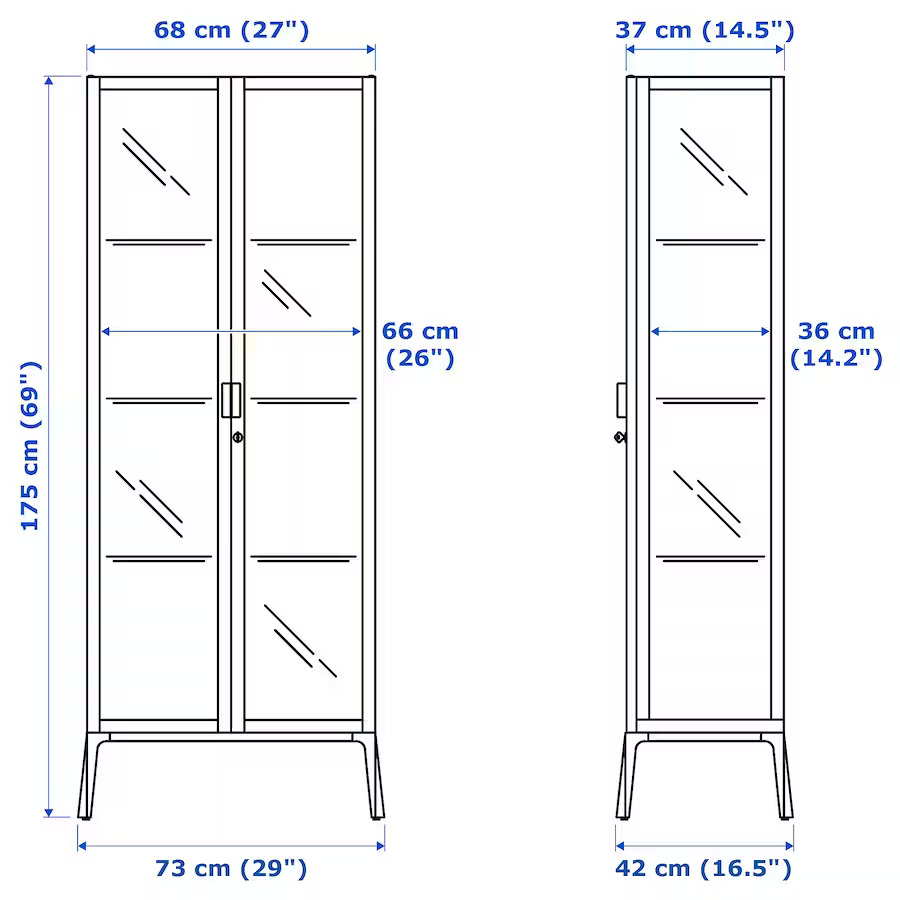 BAGGEBO บักเกบู ตู้บานกระจก ขาปรับได้จึงตั้งได้มั่นคง แม้บนพื้นผิวที่ไม่เรียบ ต้องยึดเฟอร์นิเจอร์ติดผนังด้วยแถบผ้าหรืออุปกรณ์ที่ให้มา โดยใช้คู่กับสกรูที่เหมาะกับผนัง ใช้กระจกนิรภัยอย่างระมัดระวัง หากขอบกระจกบิ่นหรือเกิดรอยขีดข่วนบนผิว อาจทำให้กระจกแตกหักได้ทันที ระวังการกระแทกด้านข้างของกระจก เพราะเป็นส่วนที่แตกง่ายที่สุด พร้อมชั้นวางกระจก 2 ชั้น