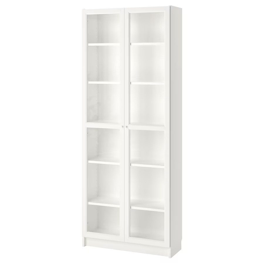 BILLY บิลลี่ / OXBERG อ็อกเบรย์ ตู้หนังสือ สีขาว ขนาด 80x30x202 ซม. บานกระจกใช้เป็นตู้โชว์ เก็บของชิ้นโปรดให้สะอาดไร้ฝุ่น บานพับปรับใช้ได้ทั้งแนวตั้งและแนวนอน ต้องยึดเฟอร์นิเจอร์ติดผนังด้วยแถบผ้าหรืออุปกรณ์ที่ให้มา โดยใช้คู่กับสกรูที่เหมาะกับผนัง ใช้กระจกนิรภัยอย่างระมัดระวัง หากขอบกระจกบิ่นหรือเกิดรอยขีดข่วนบนผิว อาจทำให้กระจกแตกหักได้ทันที ระวังการกระแทกด้านข้างของกระจก เพราะเป็นส่วนที่แตกง่ายที่สุด วัสดุผนังแต่ละแบบ ต้องใช้สกรูยึดต่างชนิดกัน ควรเลือกใช้สกรูที่เหมาะกับผนังนั้น (สกรูแยกจำหน่าย) เพดานห้องที่ประกอบตู้ต้องสูงอย่างน้อย 205 ซม.