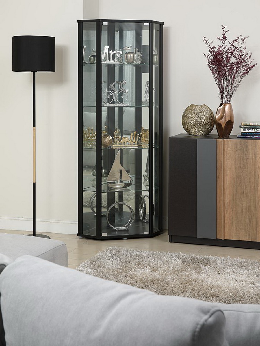 ตู้กระจกสำหรับตั้งโชว์เครื่องแก้วและของสะสมชิ้นโปรด ให้สะอาดปราศจากฝุ่น ใช้กระจกนิรภัยอย่างระมัดระวัง หากขอบกระจกบิ่นหรือเกิดรอยขีดข่วนบนผิว อาจทำให้กระจกแตกหักได้ทันที ระวังการกระแทกด้านข้างของกระจก เพราะเป็นส่วนที่แตกง่ายที่สุด ต้องยึดเฟอร์นิเจอร์ติดผนังด้วยแถบผ้าหรืออุปกรณ์ที่ให้มา โดยใช้คู่กับสกรูที่เหมาะกับผนัง วัสดุผนังแต่ละแบบ ต้องใช้สกรูยึดต่างชนิดกัน ควรเลือกใช้สกรูที่เหมาะกับผนังนั้น (สกรูแยกจำหน่าย) ต้องใช้คน 2 คนในการประกอบเฟอร์นิเจอร์ หลอดไฟแยกจำหน่าย