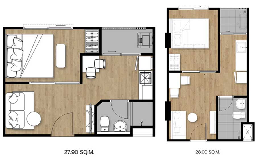 - 1 ห้องนอน ขนาด 28.00 ตร.ม.