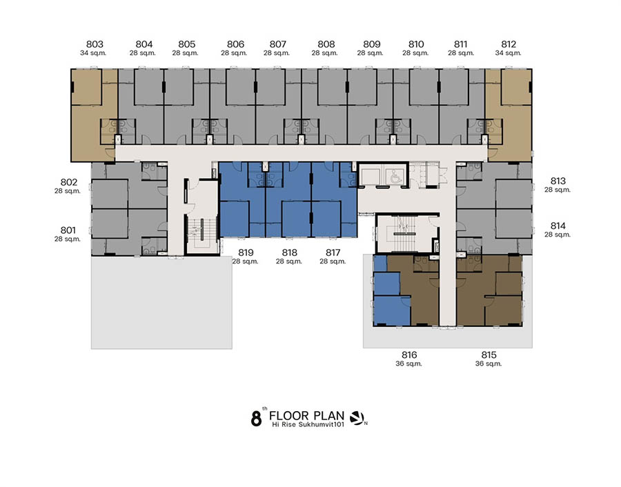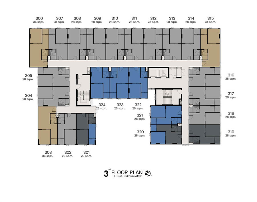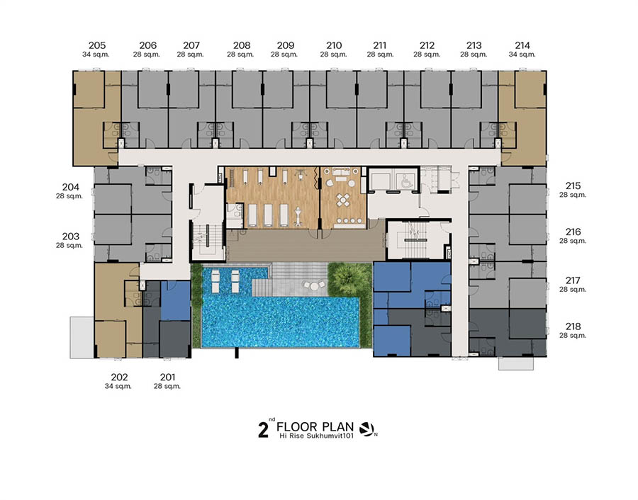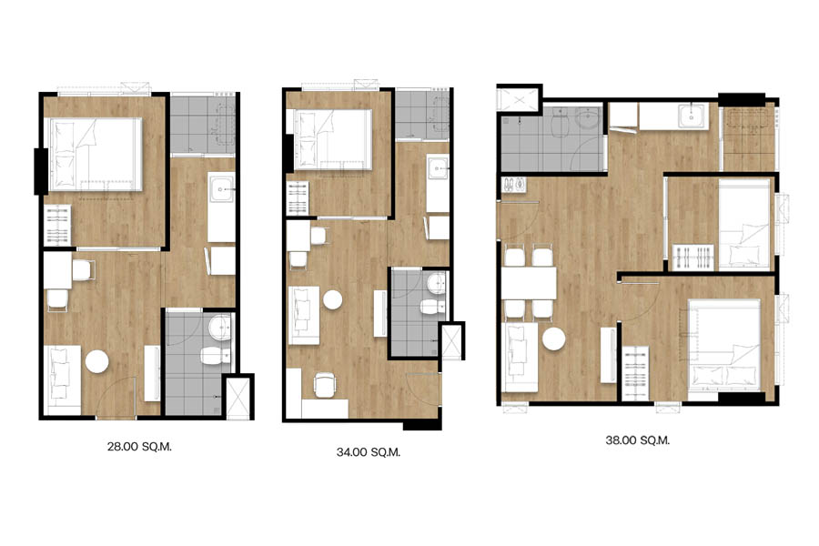 - แบบห้อง : แบบ 1 ห้องนอน ขนาด 28 ตร.ม. และ 34 ตร.ม. แบบ 2 ห้องนอน ขนาด 38 ตร.ม.