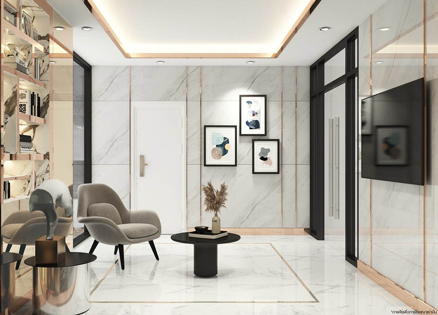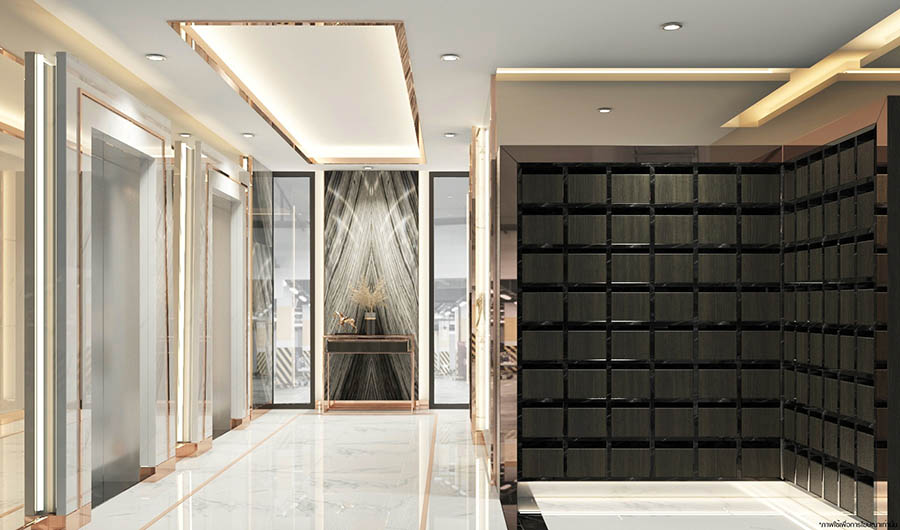 ดีไซน์หรูหรา ใช้สีเทาตัดกับสีทองแดงให้โครงการดูโดดเด่น