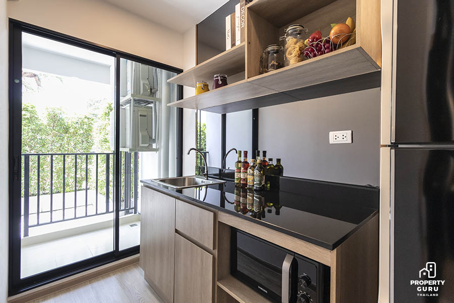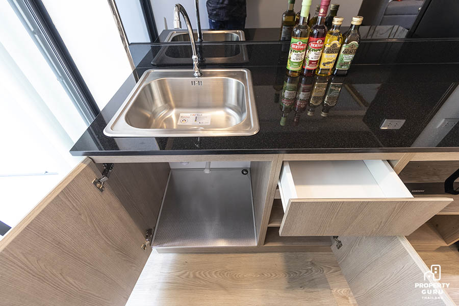ทางโครงการให้เคาน์เตอร์ครัว Top เป็นหินสังเคราะห์ พร้อมชั้นเก็บของด้านบน