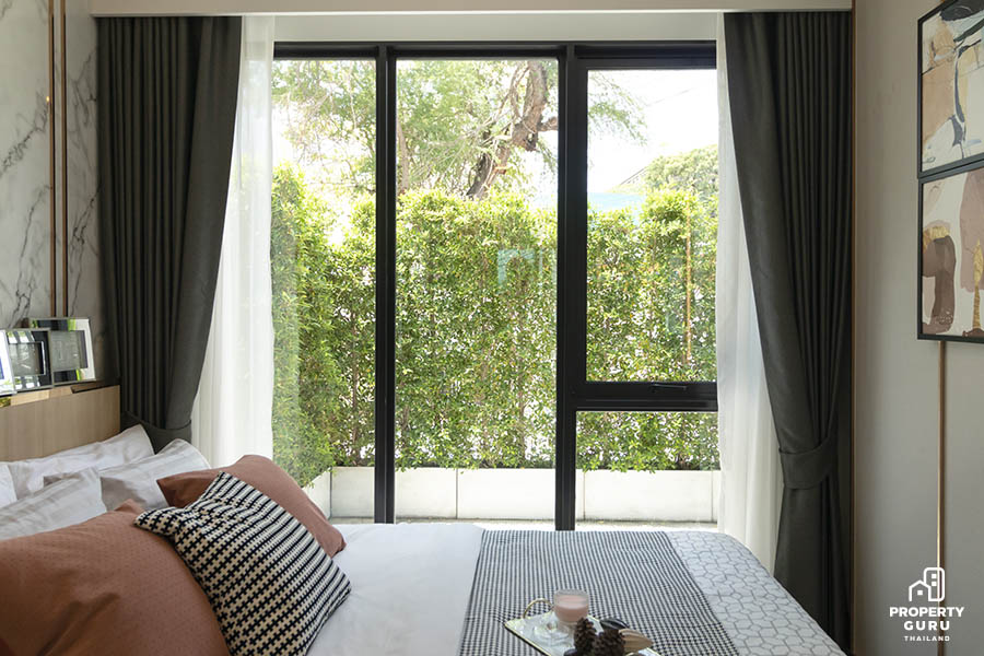 ประตูของห้องจะได้เป็นประตู HDF พร้อมลูกบิด เมื่อเปิดเข้ามาในห้องจะรู้สึกว่าโปร่ง