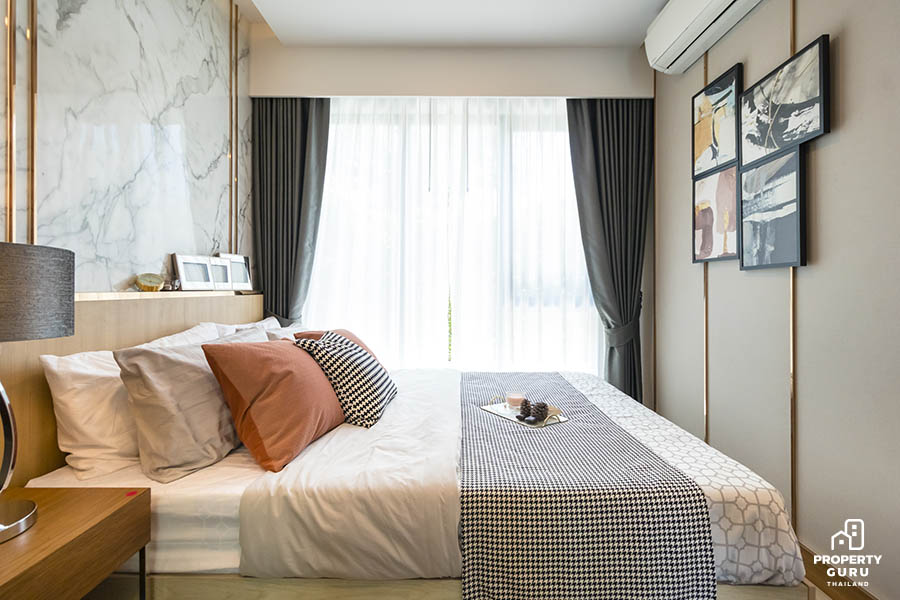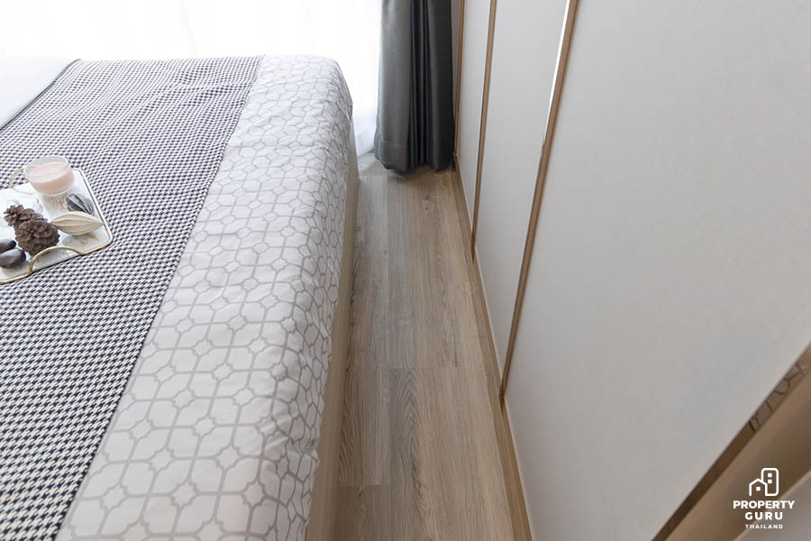 ภายในห้องนอนค่อนข้างกว้าง สามารถวางโต๊ะเครื่องแป้ง ตู้เสื้อผ้า เตียง โต๊ะข้างเตียงได้