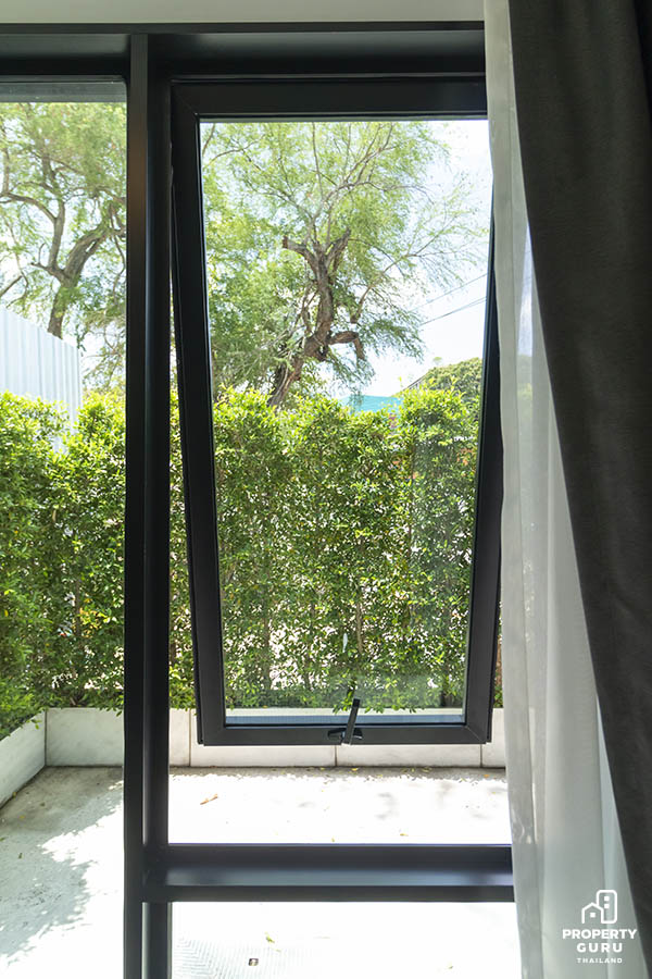 อีกฝั่งหนึ่งของห้องนอน จะเห็นได้ว่ากระจกด้านในก็เป็นเขียวตัดแสงด้วย