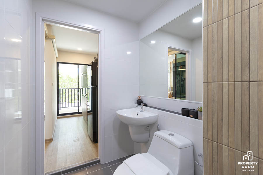 หน้าห้องน้ำเชื่อมต่อไปยังห้องครัวจะมีพื้นที่สำหรับวางของได้นิดหน่อย และมีพื้นที่วางตู้เย็นขนาดใหญ่ด้วย