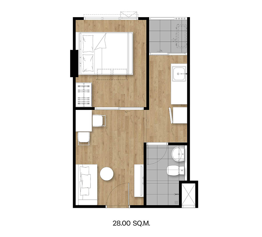 โครงการมีแบบห้องทั้งหมด 3 แบบ คือ แบบ 1 ห้องนอน ขนาด 28 ตร.ม. และ 34 ตร.ม. แบบ 2 ห้องนอน ขนาด 38 ตร.ม. โดยห้องตัวอย่างที่เราจะรีวิวในวันนี้คือ 1 ห้องนอน ขนาด 28 ตร.ม. ค่ะ