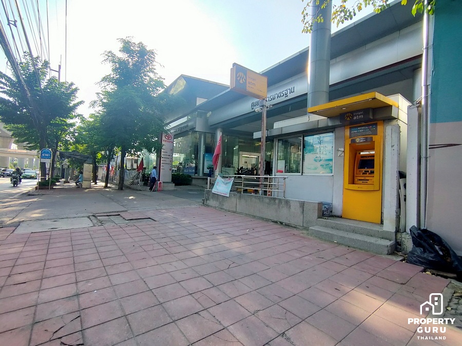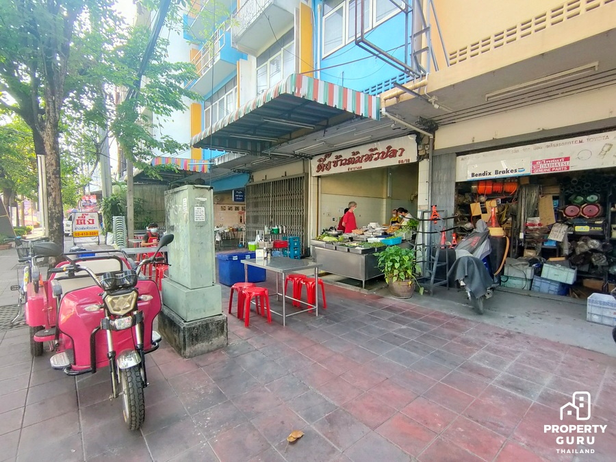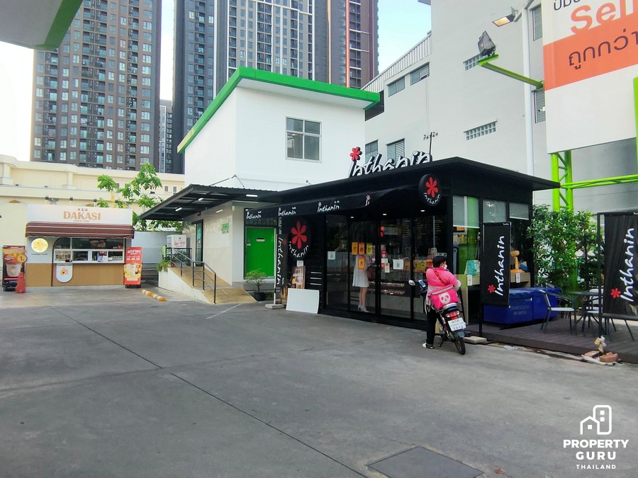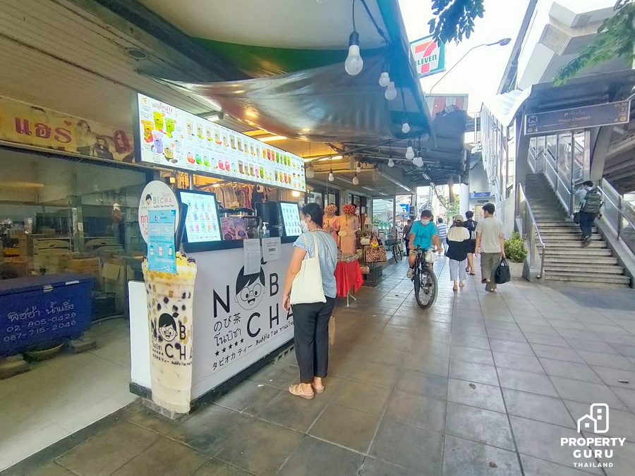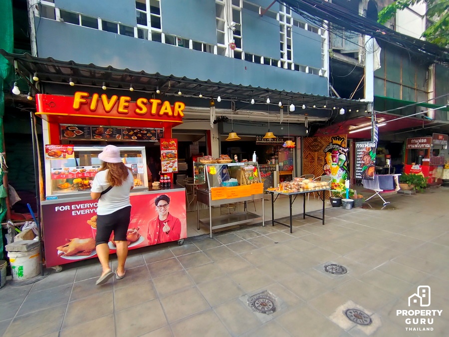 ถัดมาอีกก็จะเป็นแนวอาคารพาณิชย์ มีร้านไก่ย่าง 5 ดาว มีร้านทำผม ร้านกาแฟ อยู่ใกล้ปายรถประจำทาง