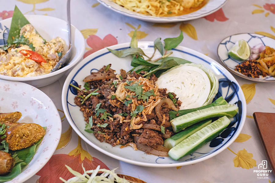 จานต่อไปคือลาบแพร่ ราคา 90 บาท แห้ง หอมพริกลาบเหนือ 10/10 เลยค่ะ