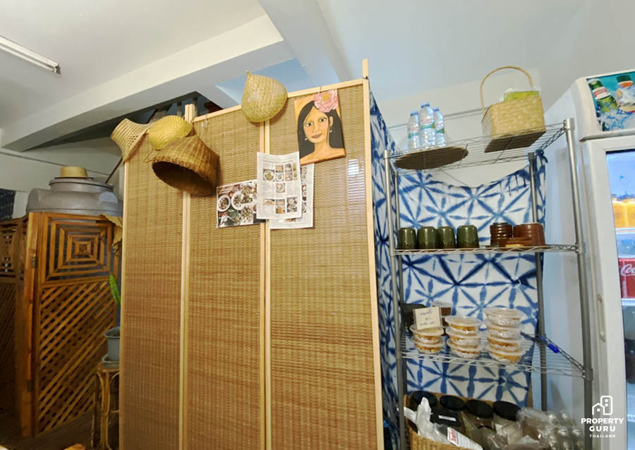 ร้านไม่ได้ตกแต่งอะไรมากมายนัก เน้นเรียบง่าย แฝงความโลคอลด้วยเครื่องจักสาน