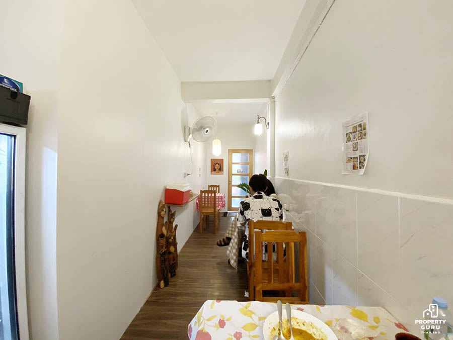 ห้องแถวฝั่งหนึ่งถูกแบ่งออกเป็นครัว และอีกฝั่งเป็นโซนน dine-in มี 4 โต๊ะ ต้องจองกับทางร้านมาก่อน