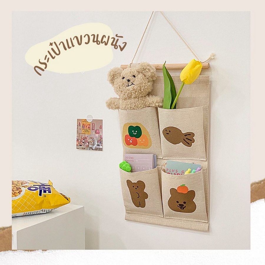 กระเป๋าแขวนผนังคุณหมีสำรับเก็บของวัสดุผ้าฝ้ายและผ้าลินินกันน้ำ ช่วยจัดระเบียบห้องรกๆ ให้ดูเรียบร้อย จะห้อยไว้ในห้องไหนๆ ก็น่ารัก ราคา 220 บาท