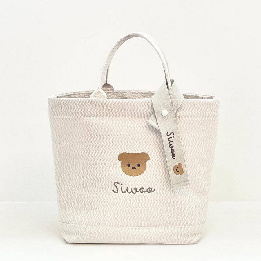 กระเป๋าผ้าอเนกประสงค์ วัสดุเป็นผ้าฝ้ายดีไซน์เรียบง่ายปักลายน้องหมีสไตล์เกาหลี ราคา 391 บาท