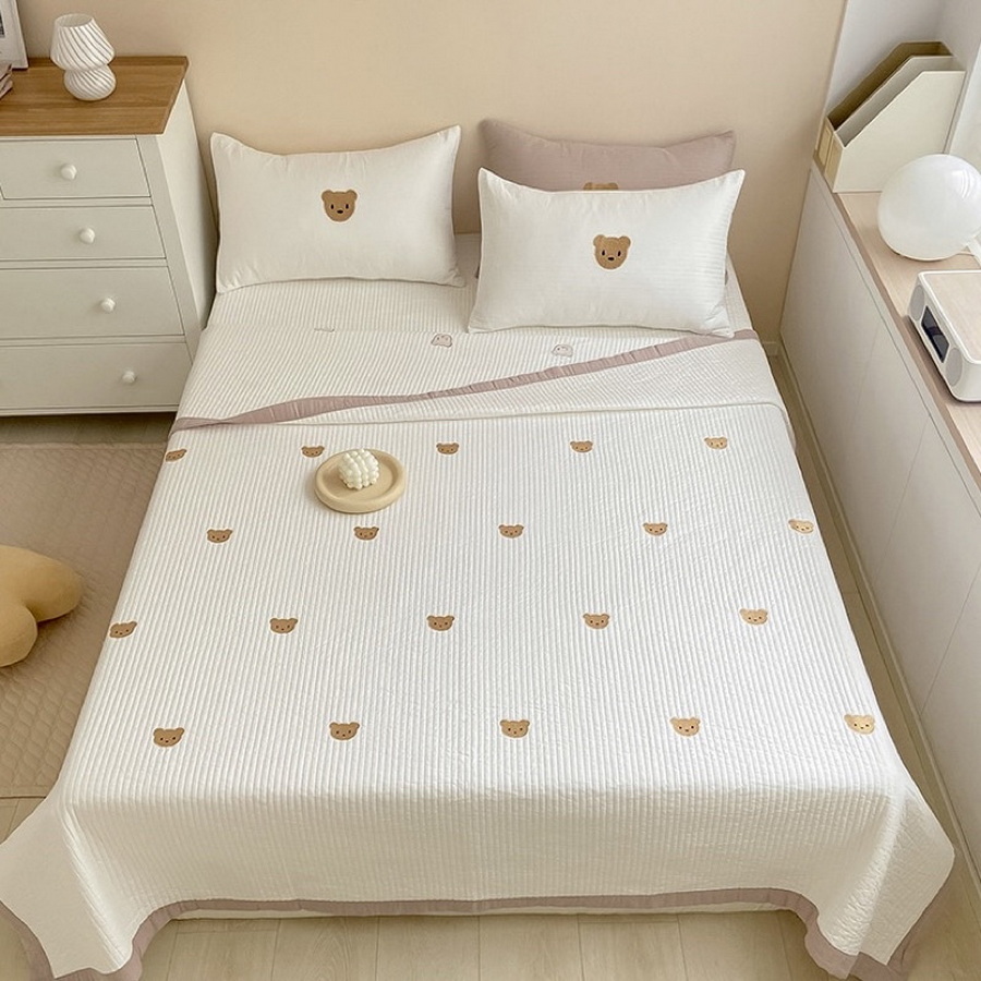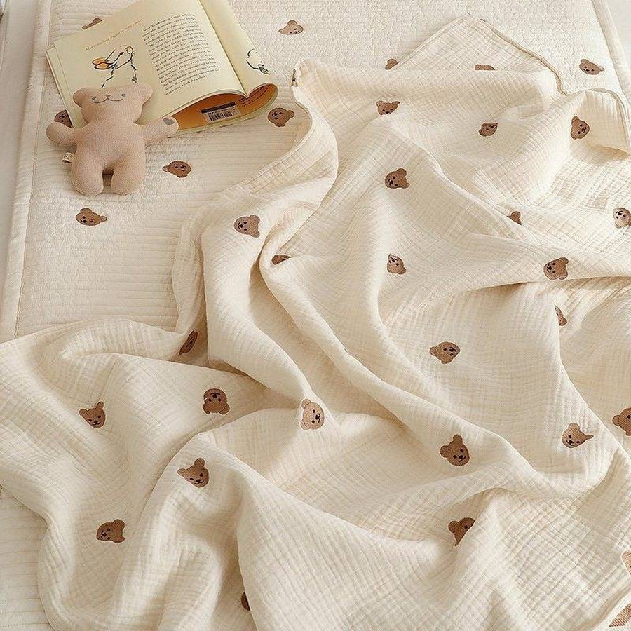 ผ้าห่มสีครีมปักลายน้องหมีสำหรับเด็ก ตัวผ้าห่มเป็นเนื้อผ้าฝ้ายแบบบางห่มได้ทั้งหน้าร้อนและหน้าหนาว ราคา 518 บาท