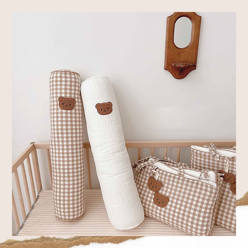 หมอนข้างมินิมอลลายเท็ดดี้และหมอนข้างลายสก็อตปักลายน้องหมี เนื้อผ้าอ่อนโยนเหมาะกับเด็กอ่อน ราคา 650 บาท