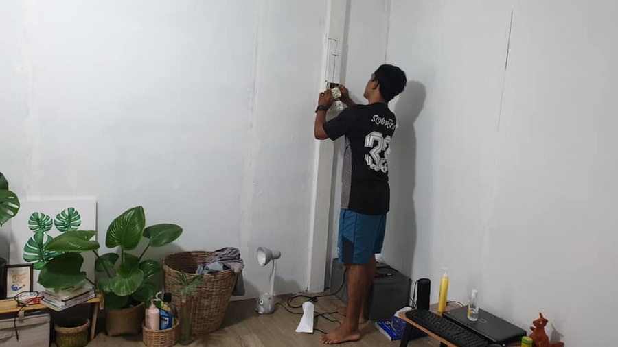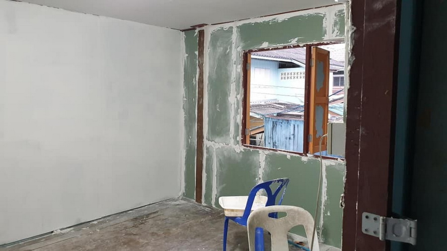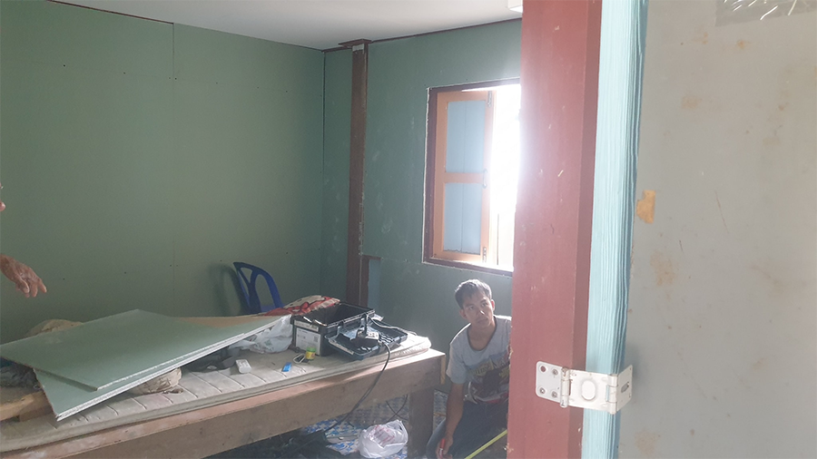 ให้ช่างซึ่งเป็นผู้ปกครองของนักเรียนมาช่วยติดยิปซั่มบอร์ด แต่เนื่องจากในวันนั้นผู้ปกครองของนักเรียนผู้เป็นช่างมีงานหลักงานอื่นอยู่ จึงมีเวลาแค่ 4 ชั่วโมง ในการติดยิปซั่มบอร์ด 10 แผ่นให้ทั่วห้อง โดยมีผู้ช่วยนั้นก็คือคุณปู่ของนักเรียนคนเดิม แต่ด้วยปัญหาหน้างานต่างๆ 4 ชั่วโมงอาจไม่เพียงพอ เราจึงขอให้ช่างแค่ติดยิปซั่มบอร์ดให้เสร็จเท่านั้น