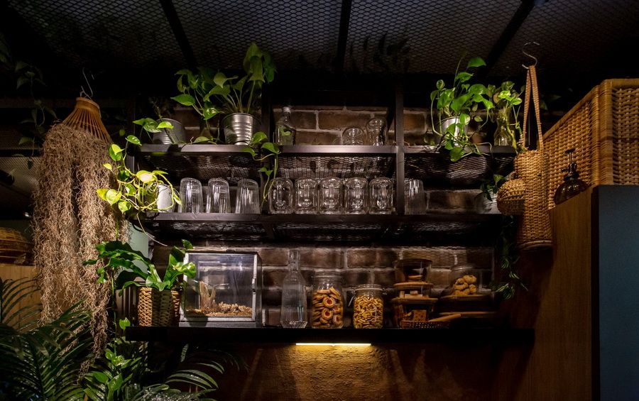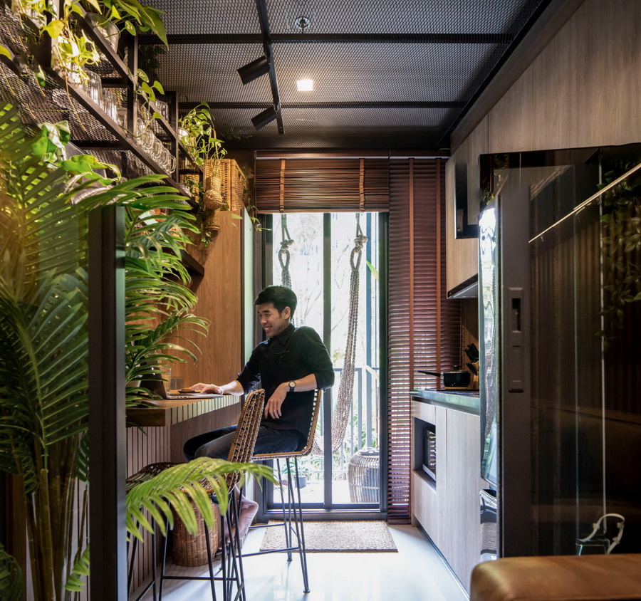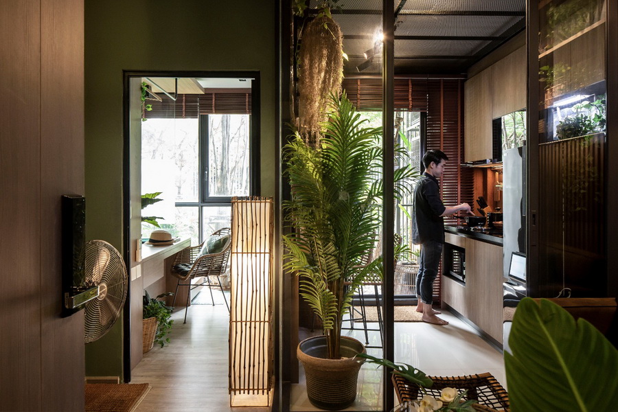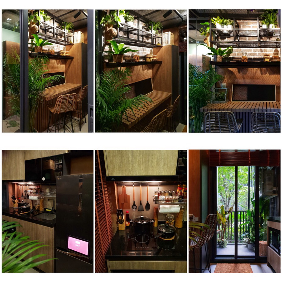 ห้องครัวนี้ไม่ได้ทำอะไรเพิ่มครับ เนื่องด้วยความแน่นอยู่แล้ว จะมีก็แต่ ต้นไม้ พรอพ ของใช้ต่างๆ(4) เข้ามาเติมเต็มจากแบบเดิม ให้แต่ละส่วนในห้องดูมีชีวิตชีวา การอยู่อาศัยจริงมากขึ้น ซึ่งต้นไม้ในห้องหลายๆจุด จะเปลี่ยนไปใช้ต้นไม้ประดิษฐ์แทน เหตุจาก ผมมีเวลาดูแลได้ไม่ดีเท่าไหร่ วันหยุดก็ไม่ค่อยจะได้อยู่ห้อง ต้องขับรถไปกลับที่บ้าน เลยตัดปัญหา น้องที่ค่อนข้างต้องการความดูแล ก็ขนกลับไปบ้าน และเปลี่ยนเป็นน้องๆประดิษฐ์แทน ไม่ต้องดูแลอะไรมาก ส่วนน้องที่มีความทนความถึกก็จะยังคงไว้อยู่ครับ โดยก็ปรับสภาพให้เข้ากับไลฟ์สไตล์เราที่ไม่ค่อยมีเวลาครับ อย่างน้องๆ ตระกูลพลู พลูด่าง พลูฉลุ ฟิโล ทั้งหลายจากเดิมปลูกใส่ดินก็ย้ายลงน้ำแทนครับ ก็คอยเติมน้ำให้เขาอาทิตย์ละครั้ง ไม่ต้องคอยรดบ่อยๆ