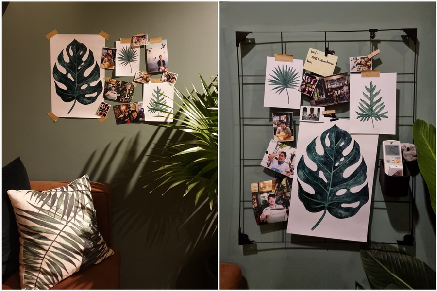 กรอบรูปแขวนผนัง(12) เดิมทีแล้วจะเป็นภาพที่ผมซื้อจากในเน็ตมาแล้วปรับแต่งสีกับขนาดแล้วเอาไปปริ้นและเข้ากรอบที่สั่งทำมา ซึ่งกรอบรูปใหม่นี้จะไม่ใช่ภาพปริ้น หรือภาพวาดลายใบไม้แต่อย่างใด แต่จะเป็นภาพที่ใส่ใบไม้จริงๆไว้เลยครับ หลายคนอาจสงสัยมันจะอยู่ได้นานเขียวอย่างนี้ตลอดมั้ย