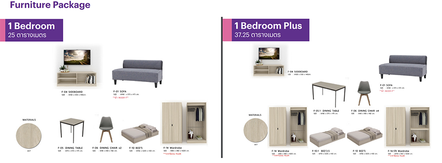 - 1 ห้องนอน 1 ห้องน้ำ ขนาด 25.00 - 25.25 ตร.ม. (65 ยูนิต)