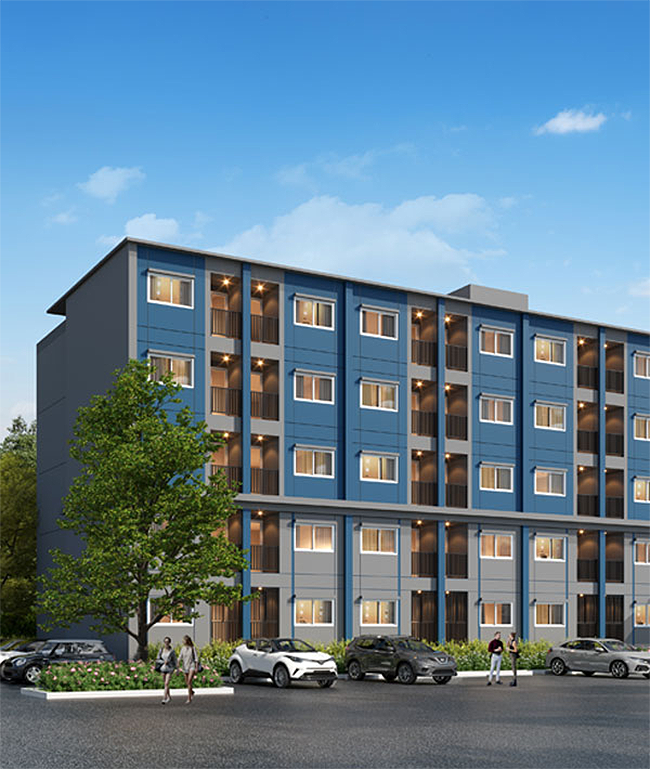 ตัวโครงการเป็นคอนโด Low-Rise 5 ชั้น 7 อาคาร พื้นที่โครงการขนาด 6-0-97.1 ไร่ จำนวนห้องพักอาศัยรวม 378 ยูนิต แต่สำหรับเฟสที่ 1 มี 54 ยูนิต มีห้องพักอาศัยเป็นแบบ 1 ห้องนอน และ 1 ห้องนอนพลัส ขนาดห้องพักอาศัยตั้งแต่ 25 - 37.5 ตร.ม. กั้นห้องเป็นสัดส่วนพร้อมห้องครัวสำหรับทำอาหาร