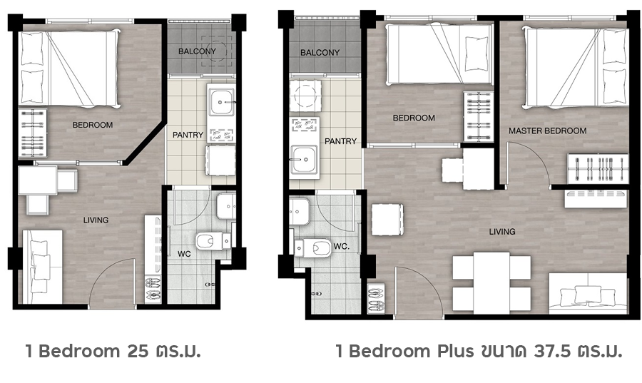 - 1 ห้องนอนพลัส ขนาด 37.5 ตร.ม.