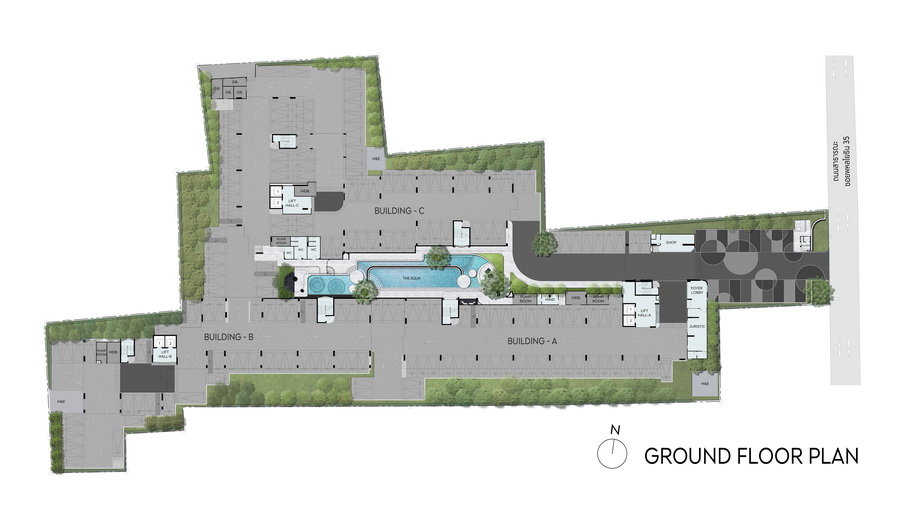 สำหรับภาพรวมของโครงการ เราจะนำภาพ Master Plan โดยรวมของโครงการมาฝากกันนะคะ โดยจะชี้ให้เห็นถึงแต่ละตึก แต่ละชั้น ว่ามีอะไรบ้าง นอกจากนี้จะมาบอกอีกว่าโครงการนี้มีสิ่งอำนวยความสะดวกอะไรบ้าง ไปดูกันเลยค่ะ