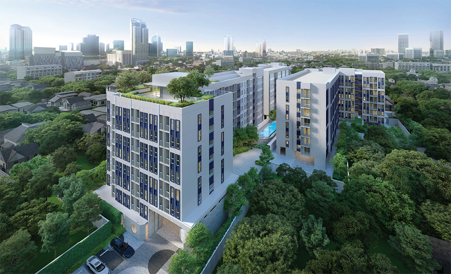 - อาคารชุดพักอาศัย : สูง 8 ชั้น จำนวน 3 อาคาร (อาคาร A, B, และ C)