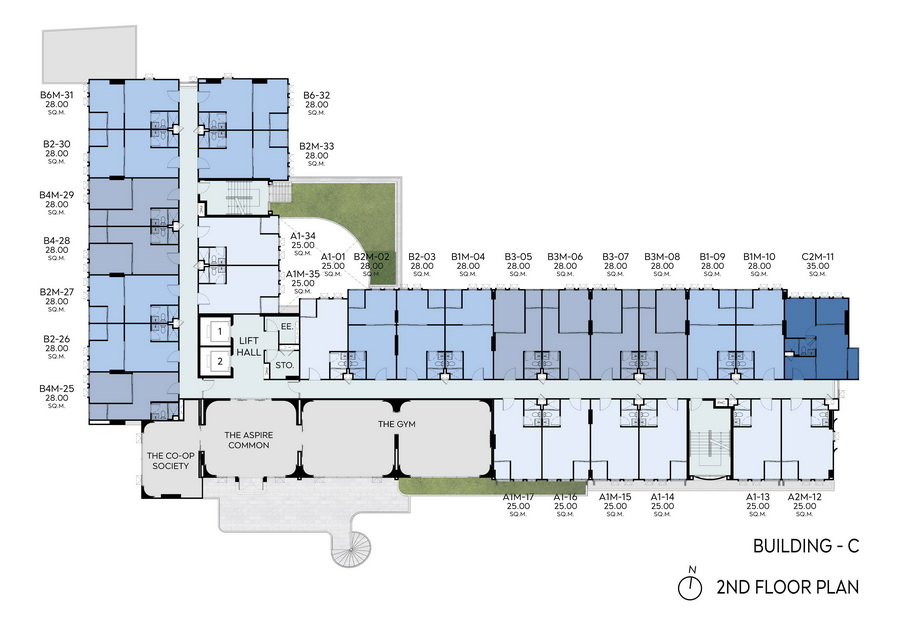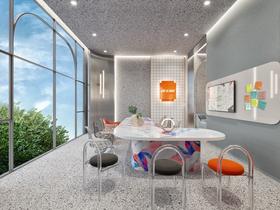 • อาคาร C ชั้น 2 เป็นห้องออกกําลังกาย, โถงต้อนรับ และพื้นที่ทํางานร่วมกัน