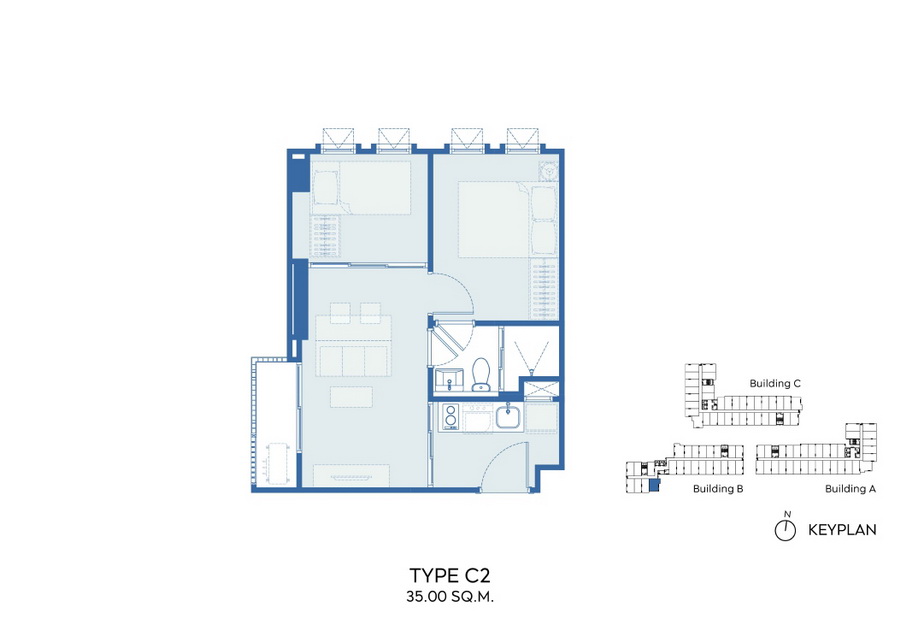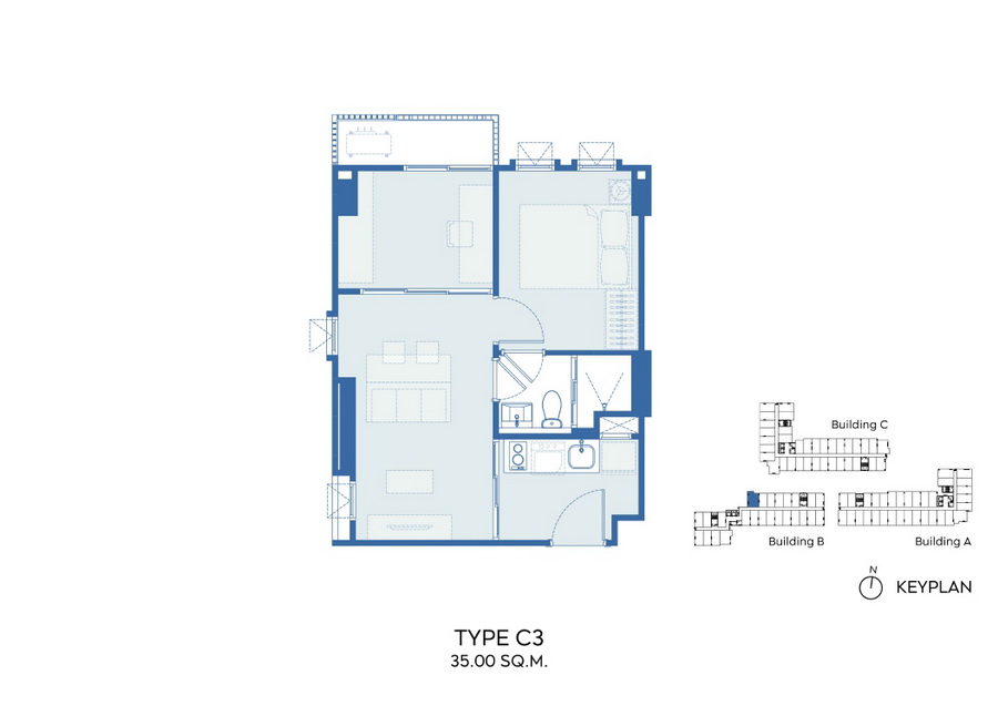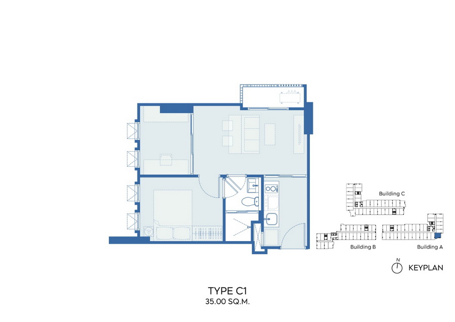 Unit Type C : 1 Bedroom Plus