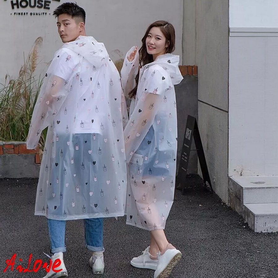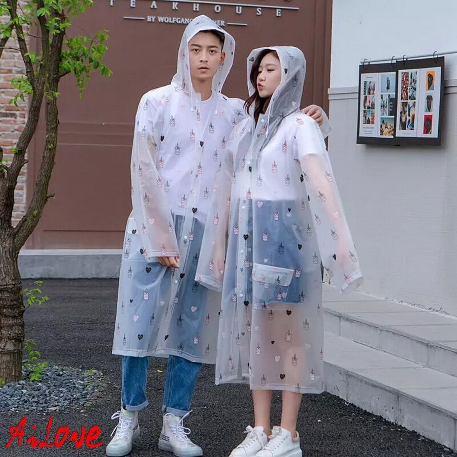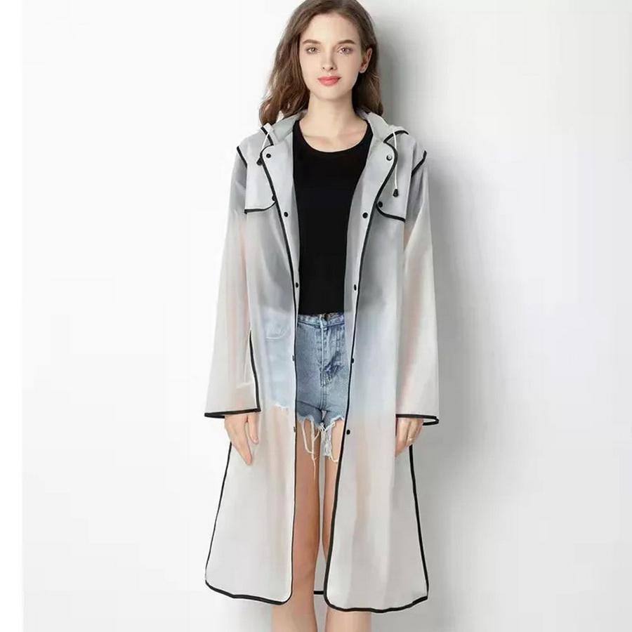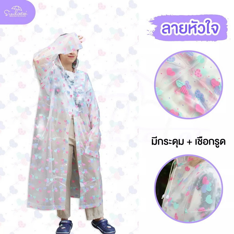 เสื้อกันฝน ทรงเสื้อโค้ทตัวยาว แบบใส Transparent มองเห็นเสื้อผ้าด้านในได้ ดีไซน์สวยเก๋ ใส่ได้ทั้งชายและหญิง