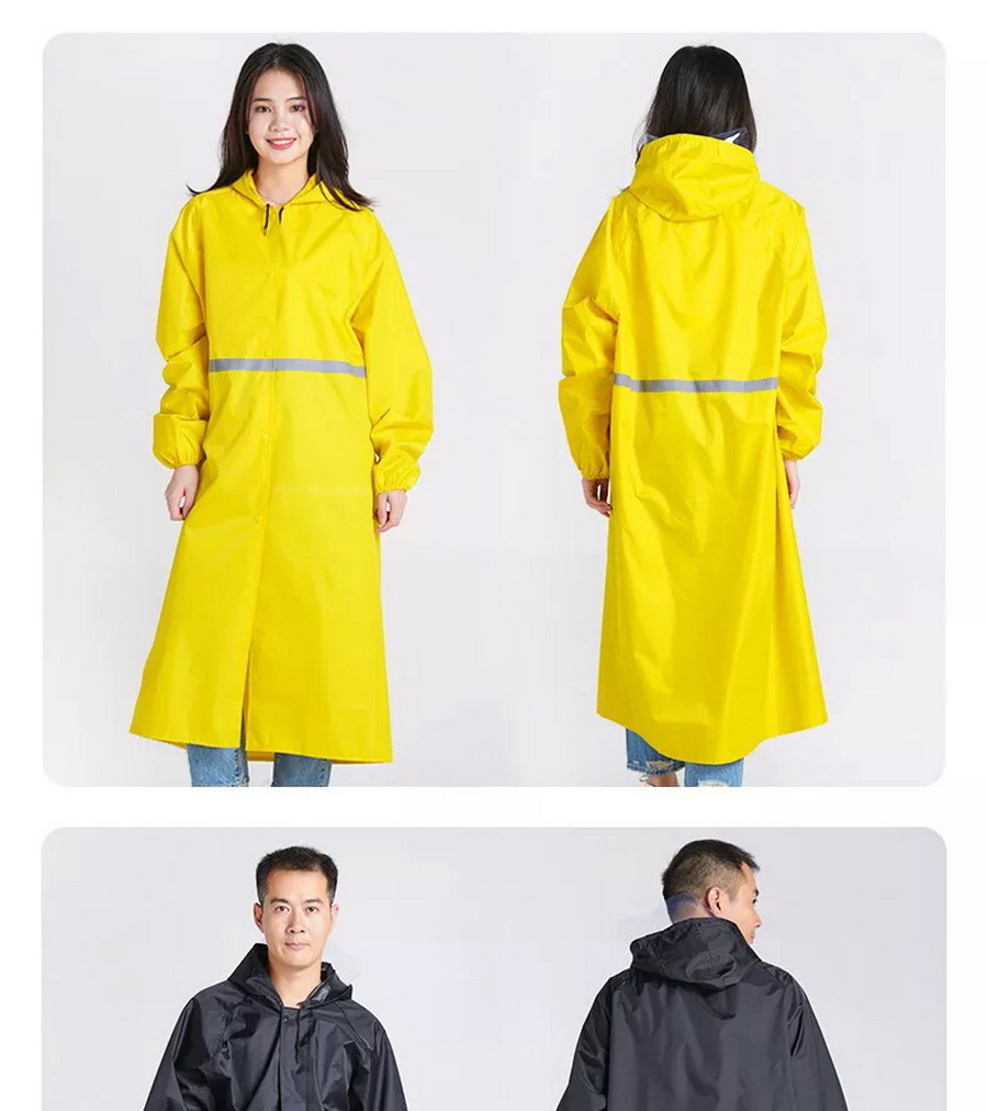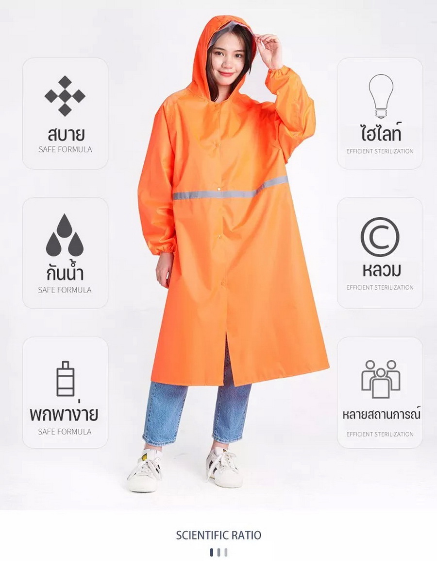 เสื้อกันฝนสำหรับผู้ใหญ่สุด Classic จากร้าน Classy Mall เป็นเสื้อโค้ทตัวยาวมีแถบสะท้อนแสงช่วยให้มองเห็นในที่มืด มาพร้อมหมวกติดเสื้อแบบหนา กันน้ำได้ดีเยี่ยม
