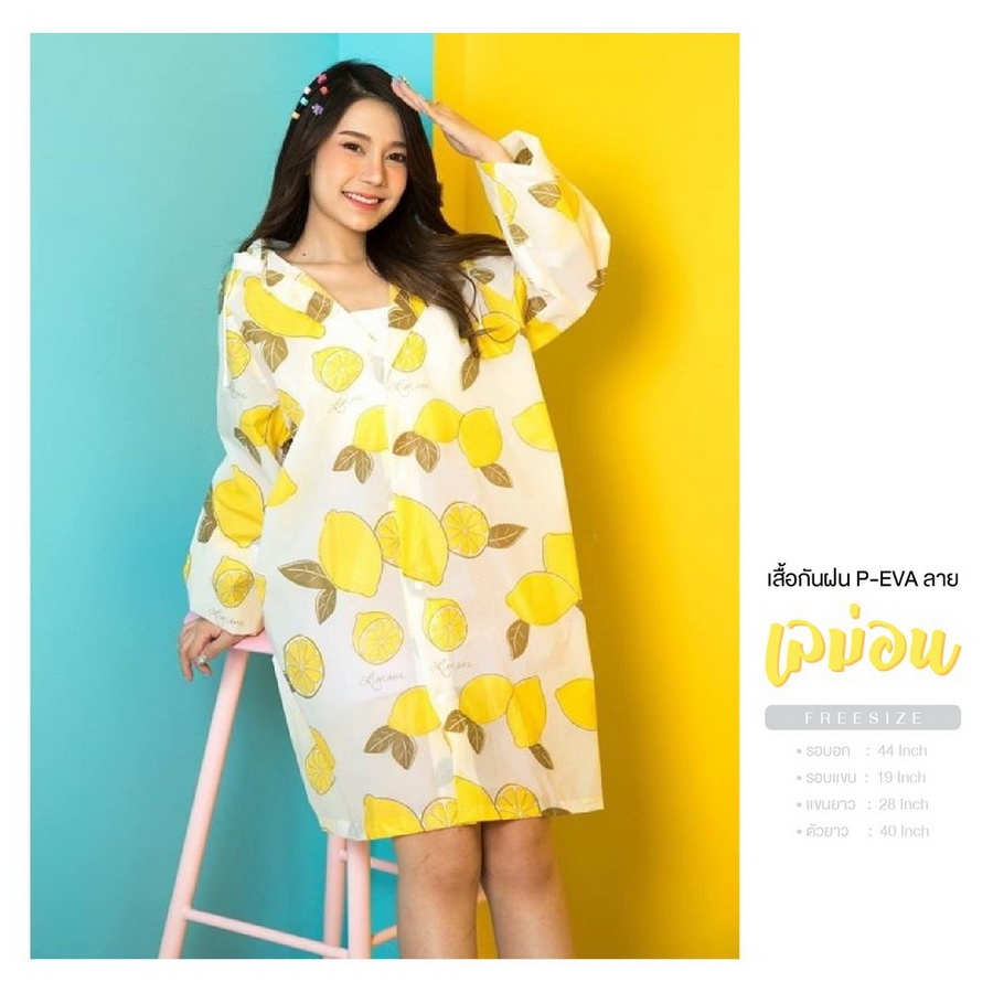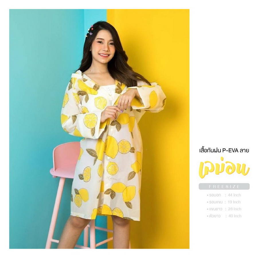 10. เสื้อกันฝนผู้หญิง เสื้อกันฝนเเฟชั่น P-EVA ลายเลม่อน ผ้าหนาเเข็งเเรงกันน้ำ 100%