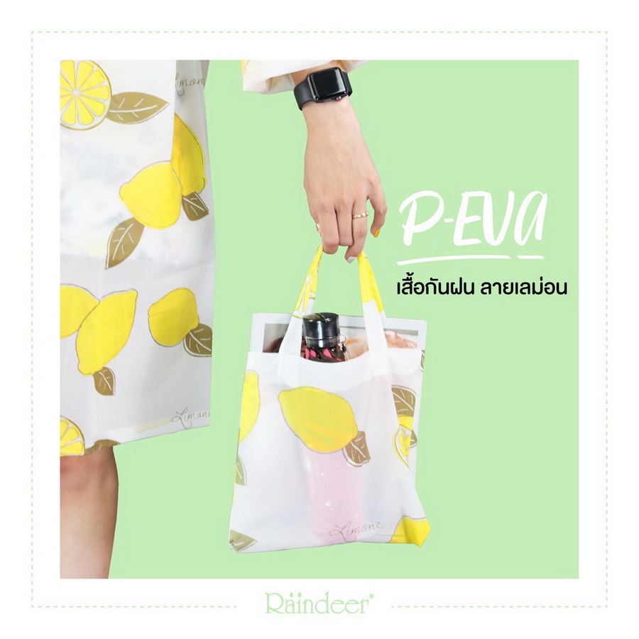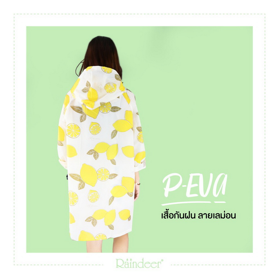 เสื้อกันฝน P-EVA ลายเลม่อนสุดเปรี้ยว ด้วยลวดลายของเสื้อกันฝนที่ถูกดีไซน์ให้มีสไตล์เก๋เท่ไม่ซ้ำใคร ทำให้คุณสวมเสื้อกันฝนได้อย่างมั่นใจ ไม่ต้องกลัวว่าตัวจะเปียกอีกต่อไป เพราะกันน้ำได้ 100% P-EVA น้ำหนักเบาเพียง 0.8 กรัม สวมใส่สบาย พับเก็บง่าย สะดวกสบายสุดๆ