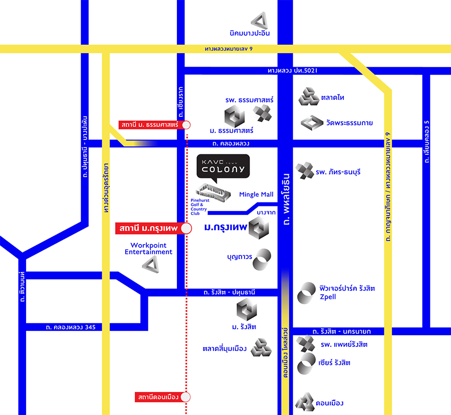 บนทำเลย่านรังสิต ใกล้ ม.กรุงเทพ รังสิต ตั้งอยู่ติดถนนพหลโยธิน สามารถเดินทางเชื่อมต่อใจกลางเมือง ได้สะดวกสบายหลากหลายเส้นทาง ใกล้ทางด่วนอุดรรัถยา และดอนเมืองโทลล์เวย์ อีกทั้งยังใกล้รถไฟฟ้าสายสีแดง สถานี ม.กรุงเทพ รายล้อมด้วยแหล่งอำนวยความสะดวก ไม่ว่าจะเป็น หน่วยงานราชการ รัฐวิสาหกิจ บริษัทเอกชนต่าง ๆ สถานศึกษา นิคมอุตสาหกรรม และห้างสรรพสินค้า โดยด้านหน้าของโครงการ ยังเป็นที่ตั้งของ Mingle Mall คอมมูนิตี้มอลล์ในเครือแอสเซทไวส์ ที่ตอบโจทย์ทุกการใช้ชีวิต